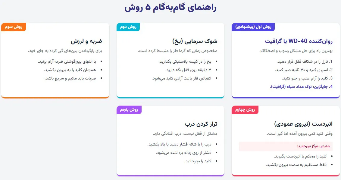 ۲. اگر کلید در قفل شکست چه کنیم؟